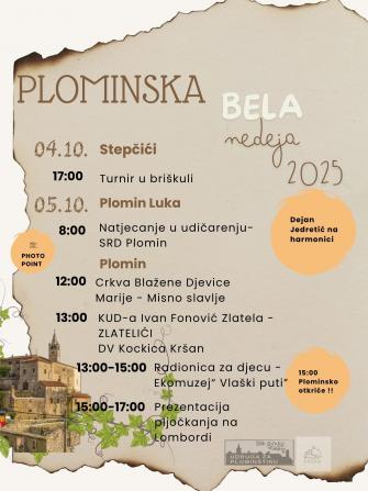Dođite, uživajte u bogatom programu i osjetite čar starog Plomina u njegovim najsvečanijim danima!